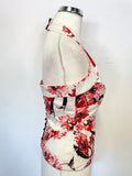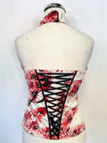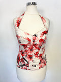 KAREN MILLEN IVORY & RED FLORAL PRINT HALTERNECK CORSET TOP SIZE 10