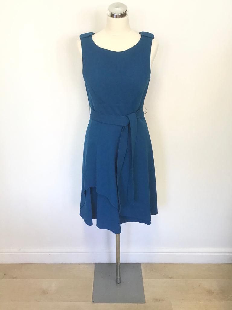 KAREN MILLEN KINGFISHER BLUE SLEEVELESS TIE WAIST A LINE DRESS SIZE 12