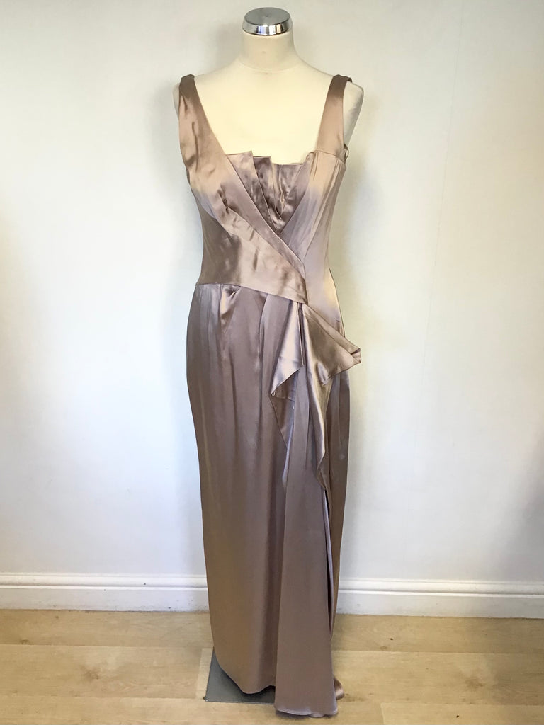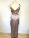 KAREN MILLEN OYSTER BEIGE SATIN LONG SPECIAL OCCASION/ EVENING DRESS SIZE 10
