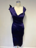 KAREN MILLEN PURPLE SATIN PLEATED DETAIL NECKLINE SPECIAL OCCASION PENCIL DRESS SIZE 10