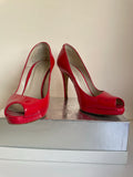 KAREN MILLEN RED PATENT LEATHER PEEPTOE HEELS SIZE 6.5/39.5