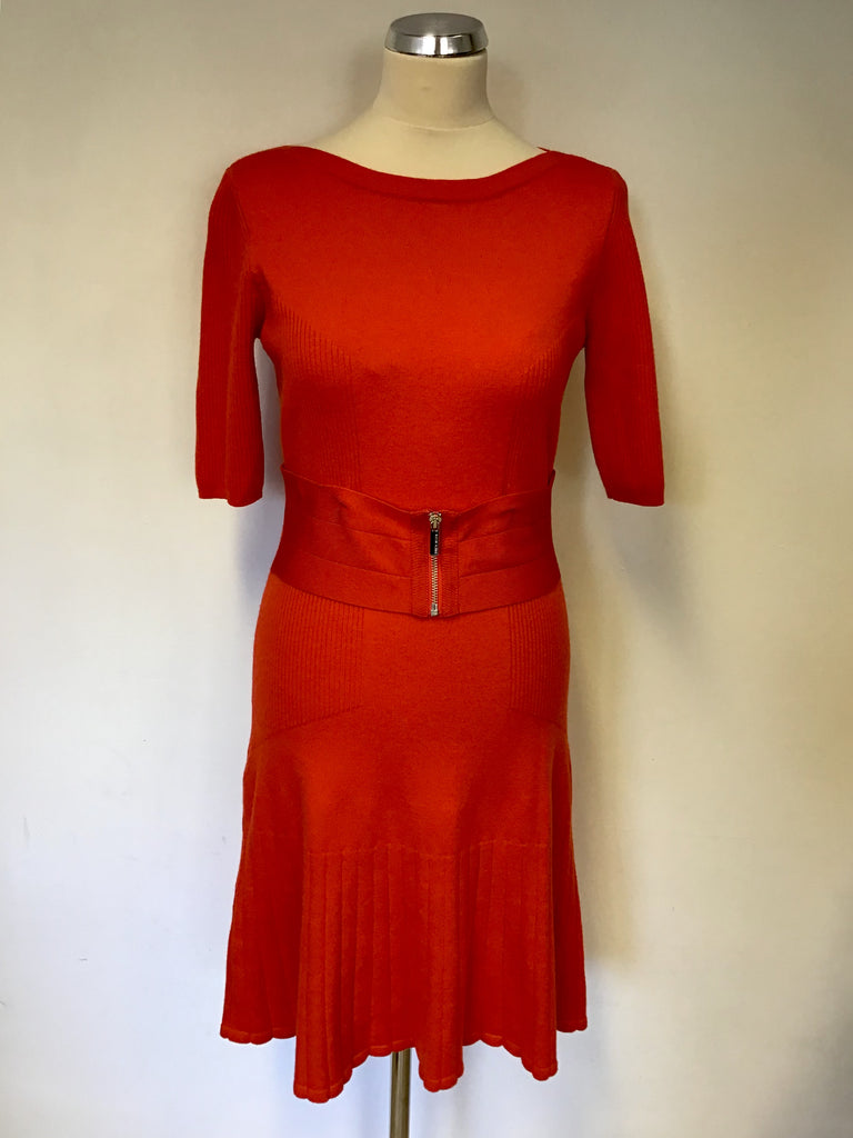 KAREN MILLEN RED WOOL BLEND SHORT SLEEVE KNIT DRESS SIZE 4 UK 12/14