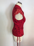 KAREN MILLEN RED FLORAL PRINT SILK LACE TRIM TOP SIZE 12