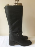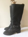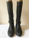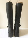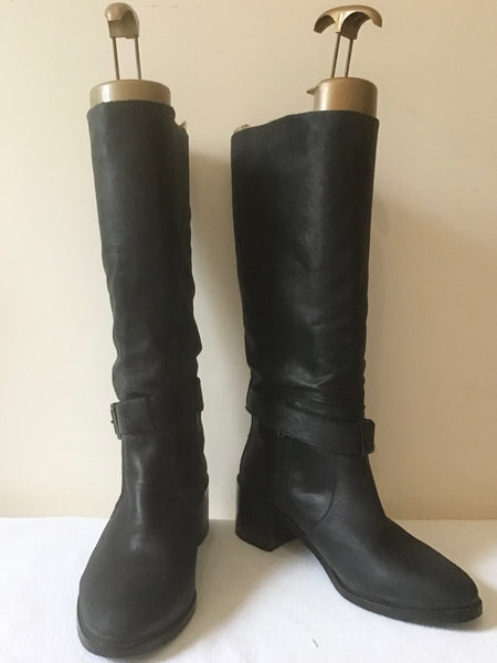 KURT GEIGER CHARCOAL GREY LEATHER BUCKLE TRIM CALF LENGTH BOOTS SIZE 6/39