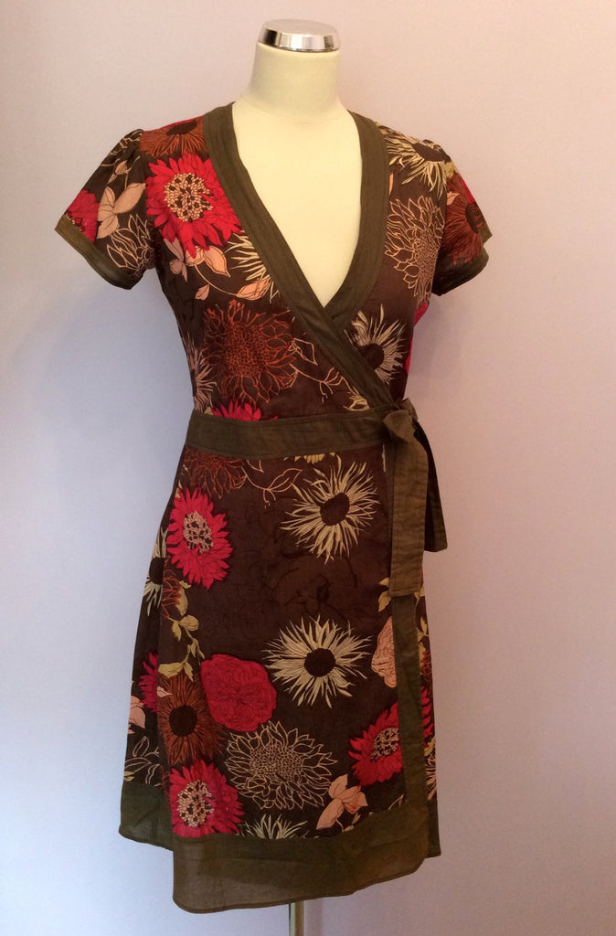 Kushi Brown & Pink Floral Print Wrap Dress Size 10