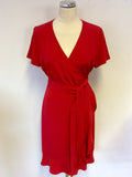 LA DRESS BY SIMONE RED CAP SLEEVE WRAP ACROSS DRESS SIZE L