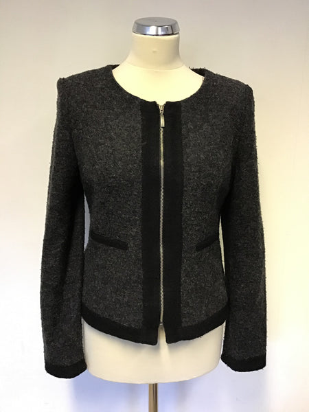 LAKELAND DARK GREY & BLACK TRIM ZIP UP WOOL BLEND JACKET SIZE 10