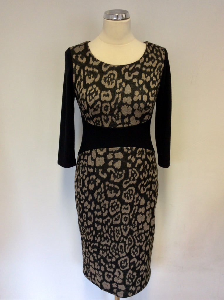 LAURA ASHLEY BLACK & BROWN ANIMAL PRINT PENCIL DRESS SIZE 8