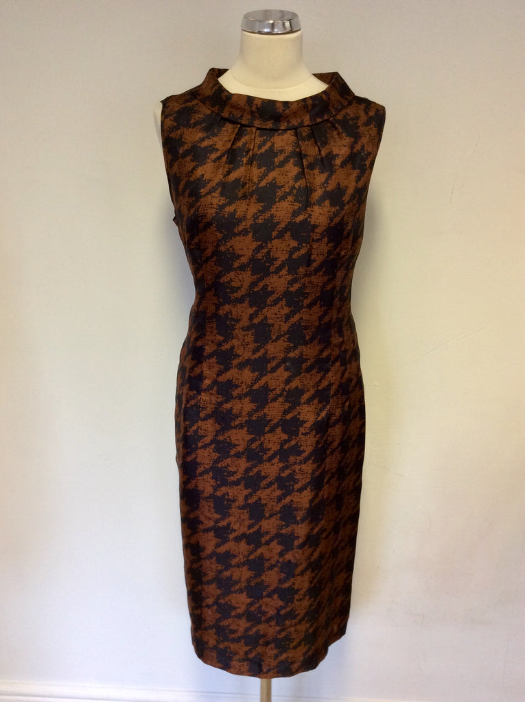 LAURA ASHLEY BLACK & COPPER PRINT SILK DRESS SIZE 16