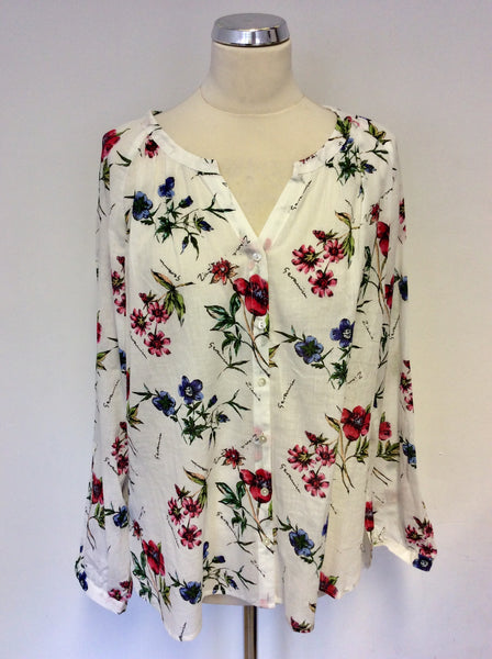 LAURA ASHLEY WHITE & MULTI COLOURED FLORAL COTTON BLOUSE SIZE 16