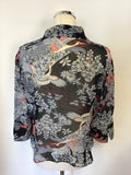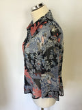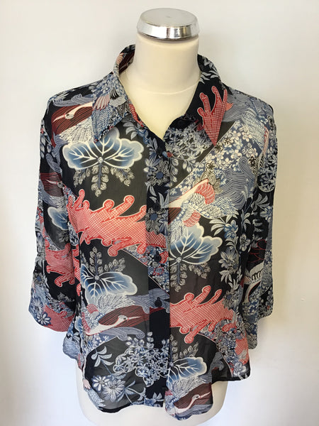LINEA BLUE & RED BIRD & FLORAL PRINT SILK BLOUSE SIZE 14