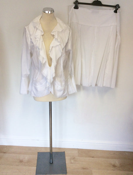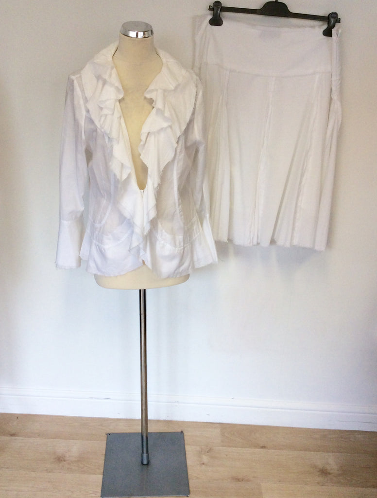 LISA CAMPIONE WHITE COTTON LIGHTWEIGHT JACKET & SKIRT SUIT