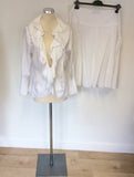 LISA CAMPIONE WHITE COTTON JACKET & SKIRT SUIT SIZE 14/16