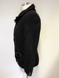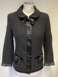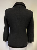 LK BENNETT 100% VIRGIN WOOL & SATIN BLACK BOW TRIMMED JACKET SIZE 10