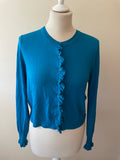 LK BENNETT ANNORA SICILIAN BLUE SILK BLEND CARDIGAN SIZE M