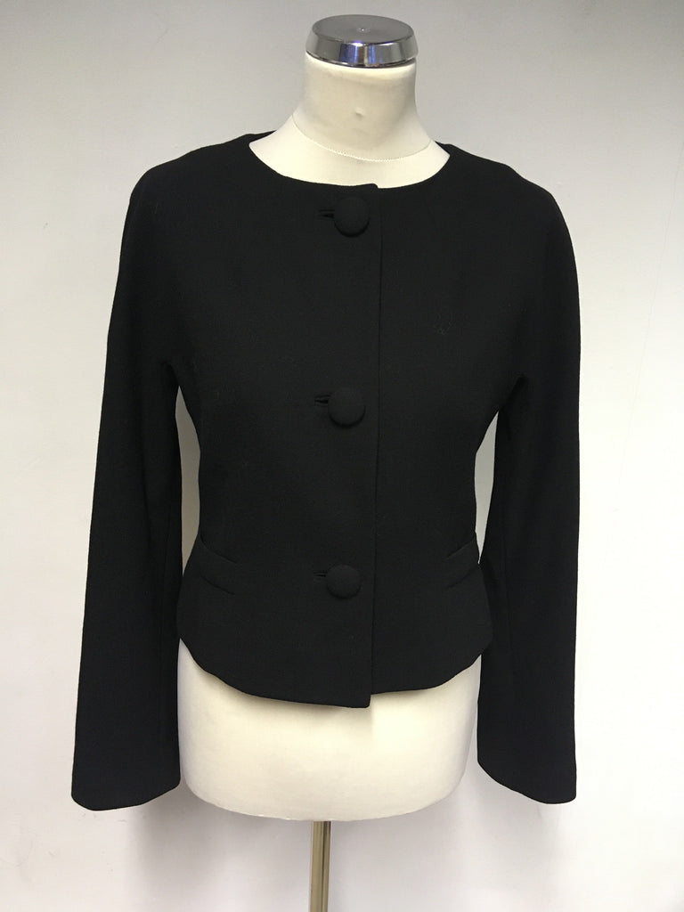LK BENNETT BLACK COLLARLESS SHORT WOOL JACKET SIZE 10