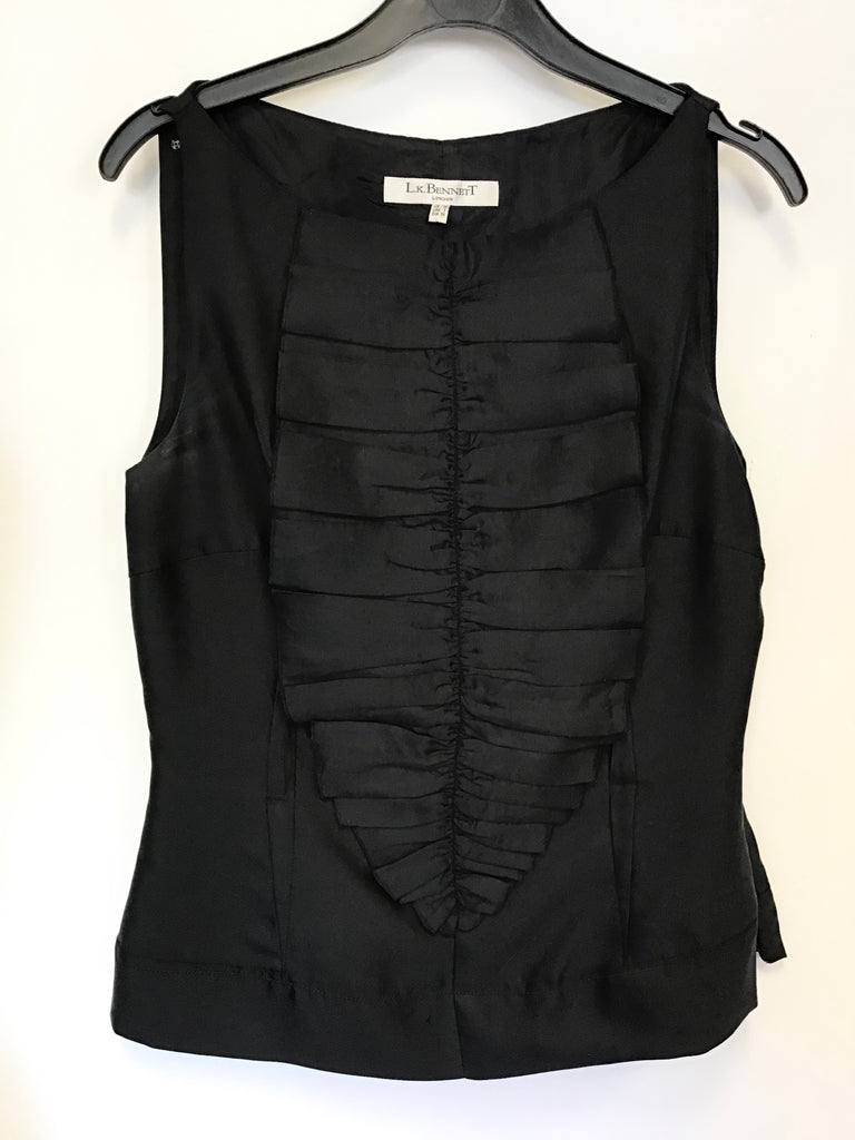 LK BENNETT BLACK SILK & WOOL PLEATED TRIM SLEEVELESS TOP SIZE 10