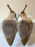 LK BENNETT BLUE & WHITE FLORAL PRINT SPECIAL OCCASION HEELS SIZE 4/37