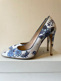 LK BENNETT BLUE & WHITE FLORAL PRINT SPECIAL OCCASION HEELS