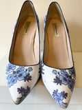LK BENNETT BLUE & WHITE FLORAL PRINT SPECIAL OCCASION HEELS SIZE 7/40