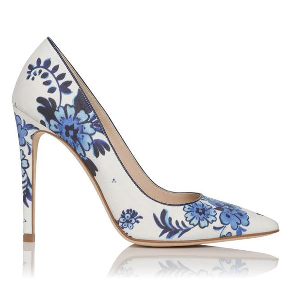LK BENNETT BLUE & WHITE FLORAL PRINT SPECIAL OCCASION HEELS