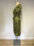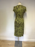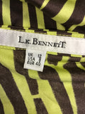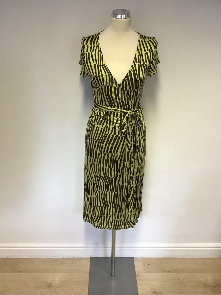 LK Bennett Brown & Lime Green Silk Wrap Dress Size 12