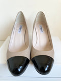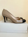 LK BENNETT CAMEL & BLACK PATENT LEATHER HEELS SIZE 5/38