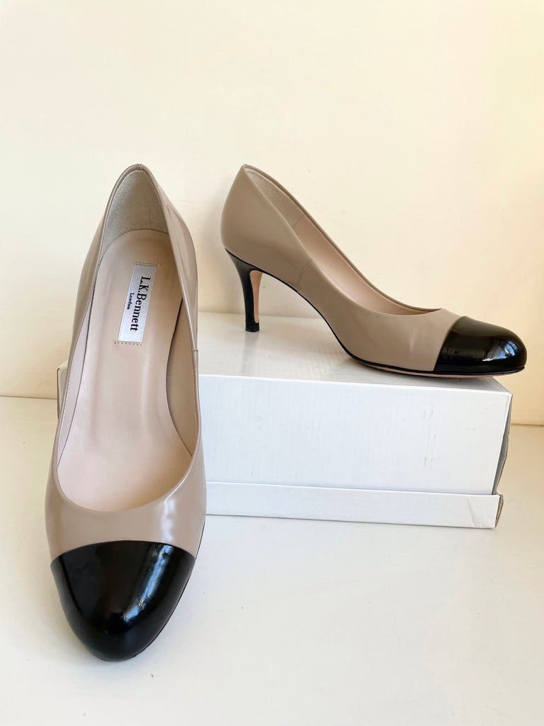 LK BENNETT CAMEL & BLACK PATENT LEATHER HEELS