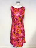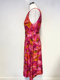 LK BENNETT CERISE PINK FLORAL PRINT 100% SILK SLEEVELESS A-LINE DRESS SIZE 12