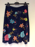 LK BENNETT DARK BLUE COTTON & MULTI COLOURED EMBROIDERED FLORAL DESIGN SKIRT