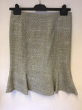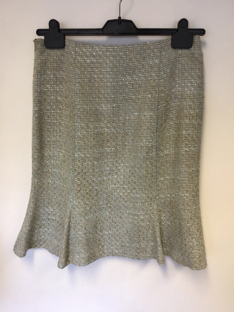 LK BENNETT DUCK EGG & BEIGE WEAVE FLUTED HEM PENCIL SKIRT SIZE 12