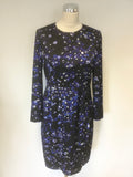 LK BENNETT IDRE BLUE MIX PRINT LONG SLEEVE SPECIAL OCCASION DRESS SIZE 12