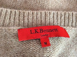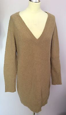 LK Bennett Light Brown Lambswool & Angora Blend Long V Neck Jumper Size M