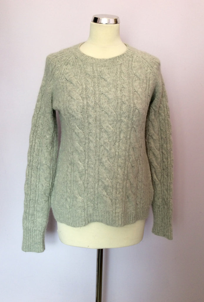 LK Bennett Light Grey Cable Knit Lambswool & Angora Crew Neck Jumper Size M