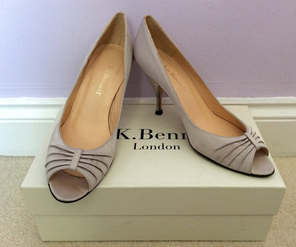 LK Bennett Light Grey Satin Peep Toe Heels Size 4/37