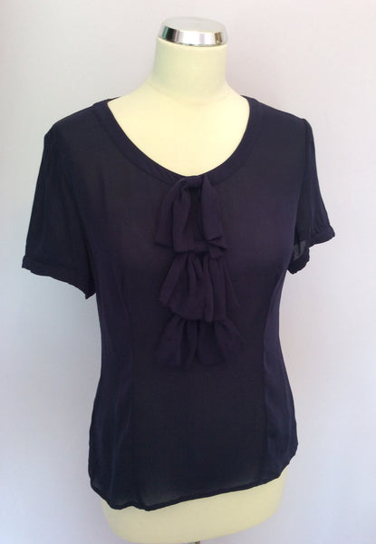 LK Bennett Navy Blue Bow Front Silk Top Size 12