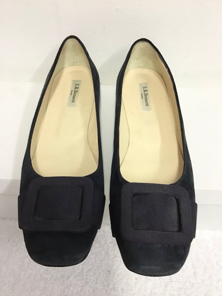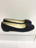 LK BENNETT NAVY BLUE SUEDE BUCKLE TRIM FLATS SIZE 7.5/41