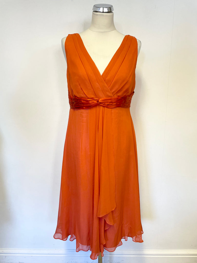 LK BENNETT ORANGE SILK & SATIN TRIM FIT & FLARE SPECIAL OCCASION DRESS SIZE 14
