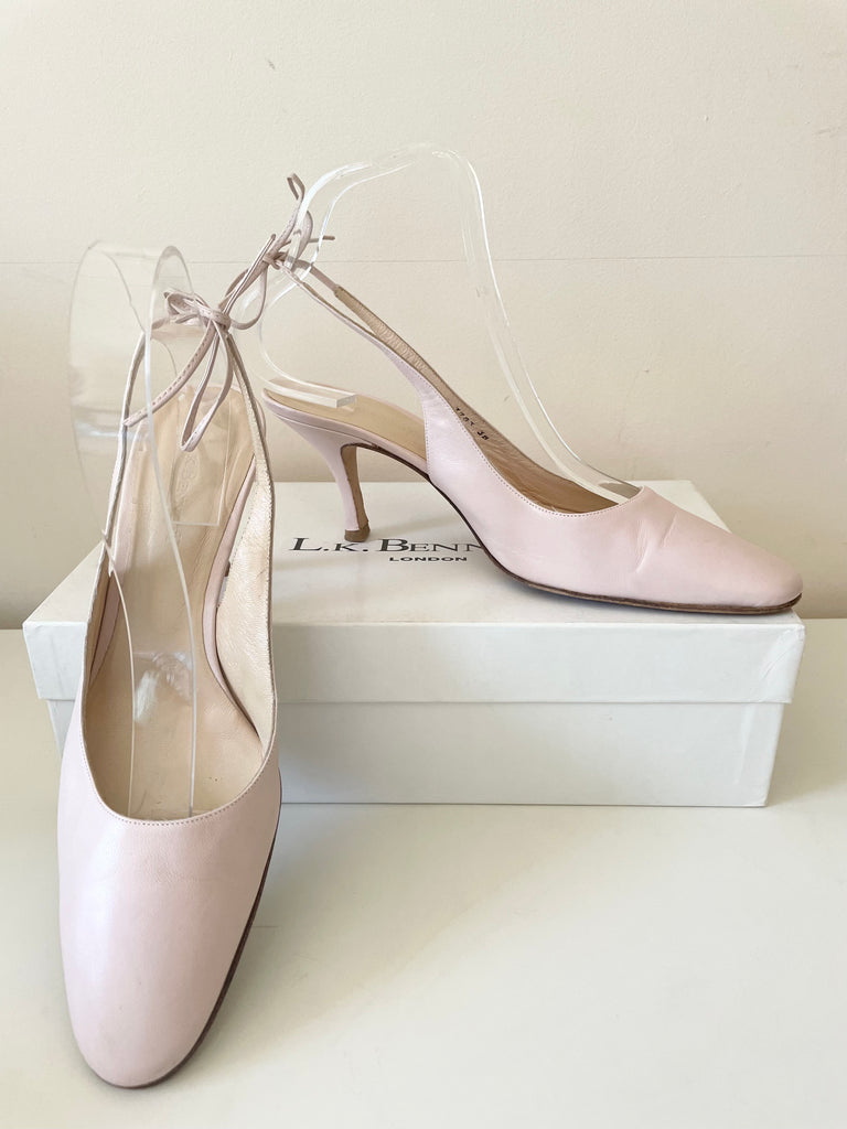 LK BENNETT PALE PINK LEATHER TIE BACK SLINGBACK STRAP HEELS SIZE 5/38