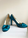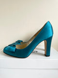 LK BENNETT SAMI TEAL SATIN HEELS & MATCHING CLUTCH/SHOULDER BAG