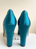 LK BENNETT SAMI TEAL SATIN HEELS & MATCHING CLUTCH/SHOULDER BAG SIZE 6/39