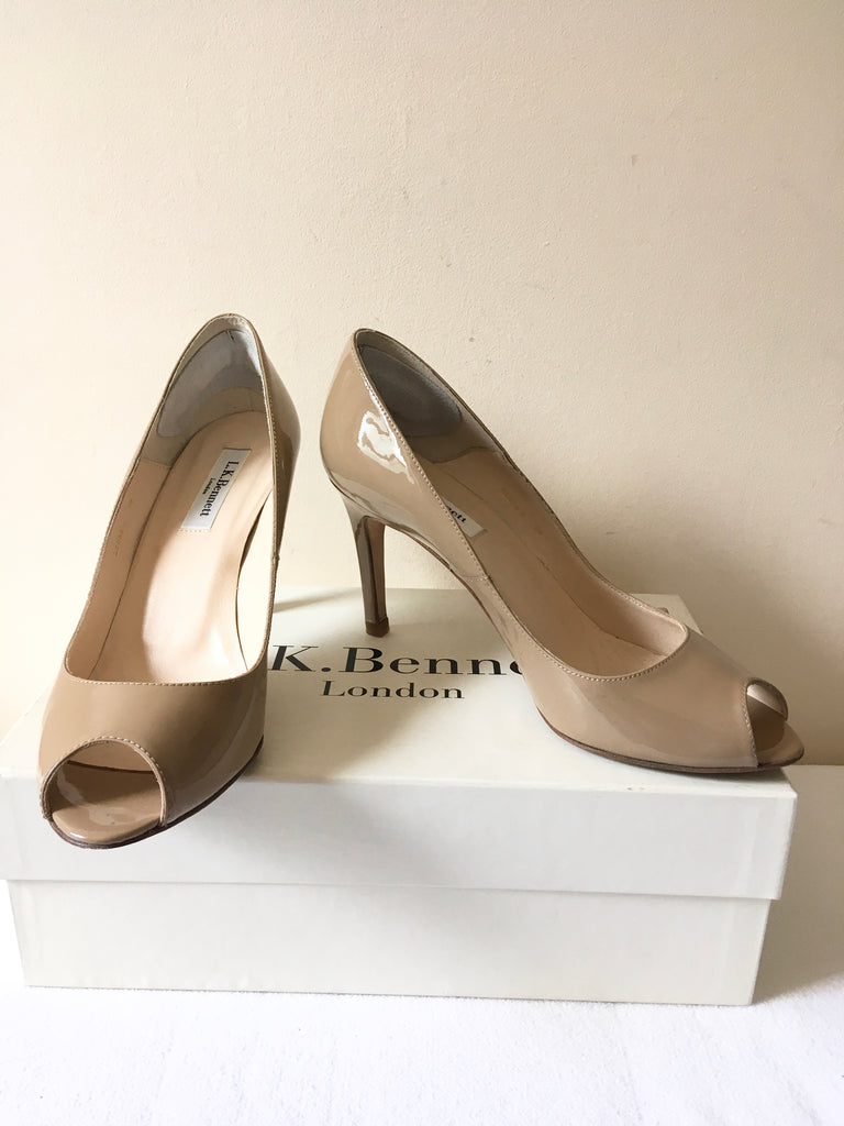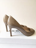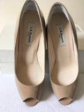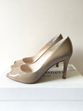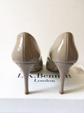 LK BENNETT SCRUPLE TAUPE PATENT LEATHER PEEPTOE HEELS SIZE 5/38
