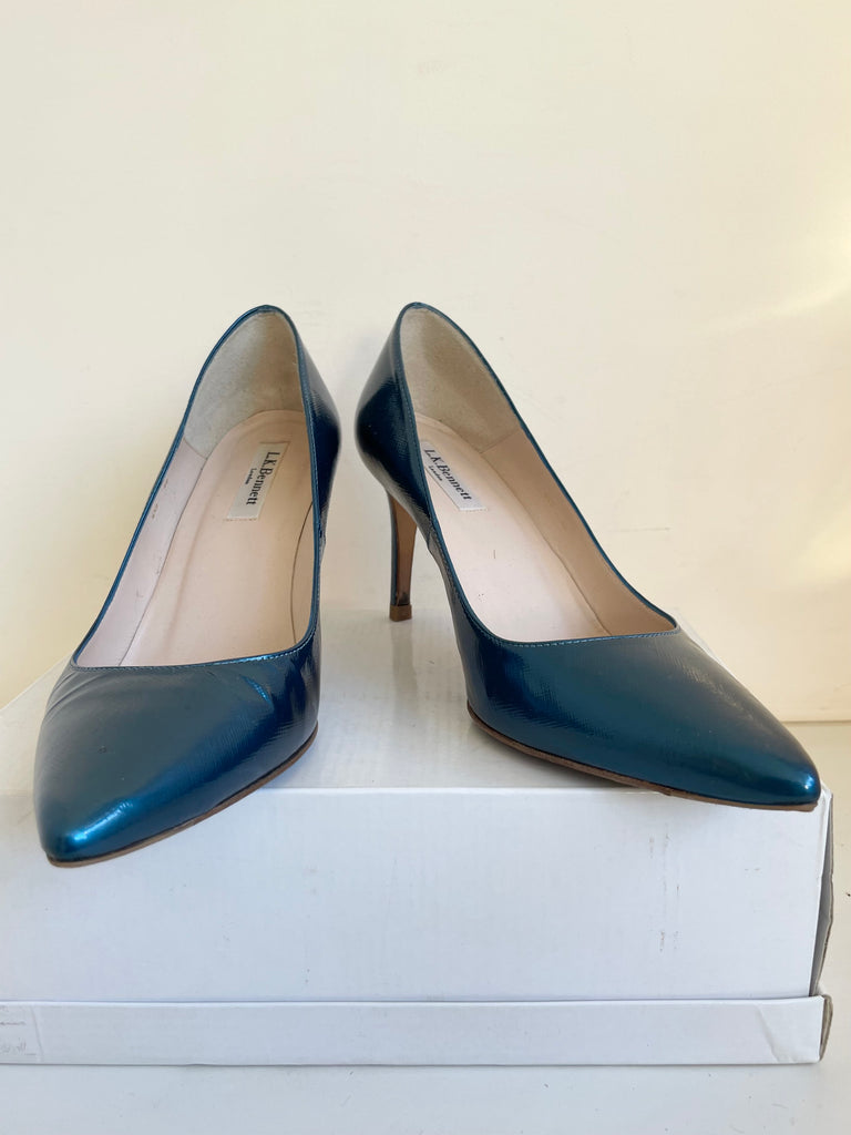 LK BENNETT TURQUOISE/ BLUE METALLIC LEATHER HEELS