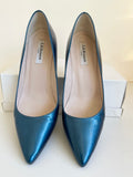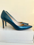 LK BENNETT TURQUOISE/ BLUE METALLIC LEATHER HEELS SIZE 7/40