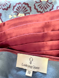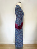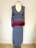 LOOKING GLASS BLUE & BURGUNDY PRINT STRETCH JERSEY MIDI DRESS SIZE 10