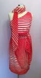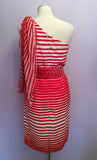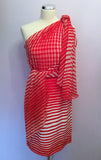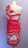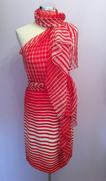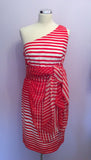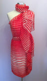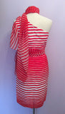 Louis Ferraud Red & White Stripe One Shoulder Dress Size 10