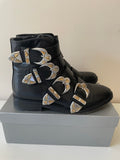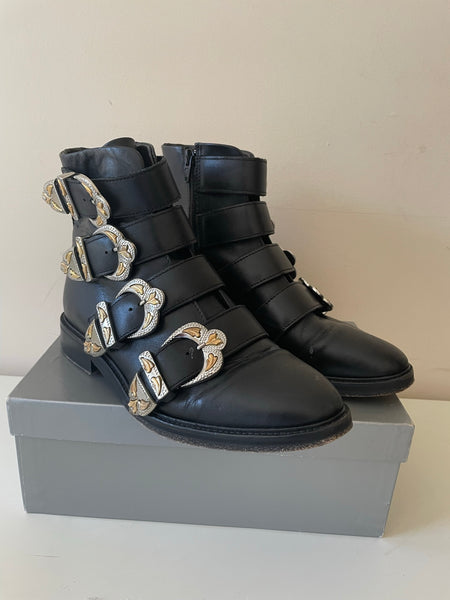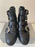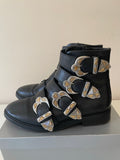 MAJE JACKPOT BLACK LEATHER BUCKLE TRIM ANKLE BOOTS SIZE 5/38