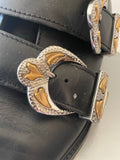 4 ADJUSTABLE SILVER & GOLD TRIM BUCKLE FASTEN STRAPS ACROSS TOP OF BOOT