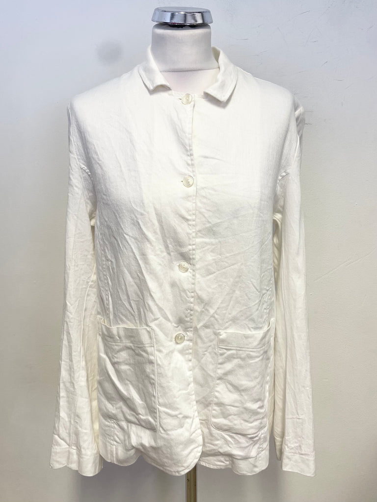 MAMA B GLICINE D WHITE LINEN & COTTON BLEND LONG SLEEVED JACKET SIZE S