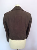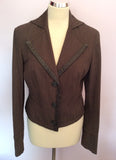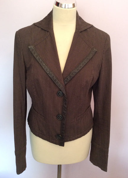 Marc Aurel Brown Pinstripe Jacket With Leather Trim Size 40 UK 14
